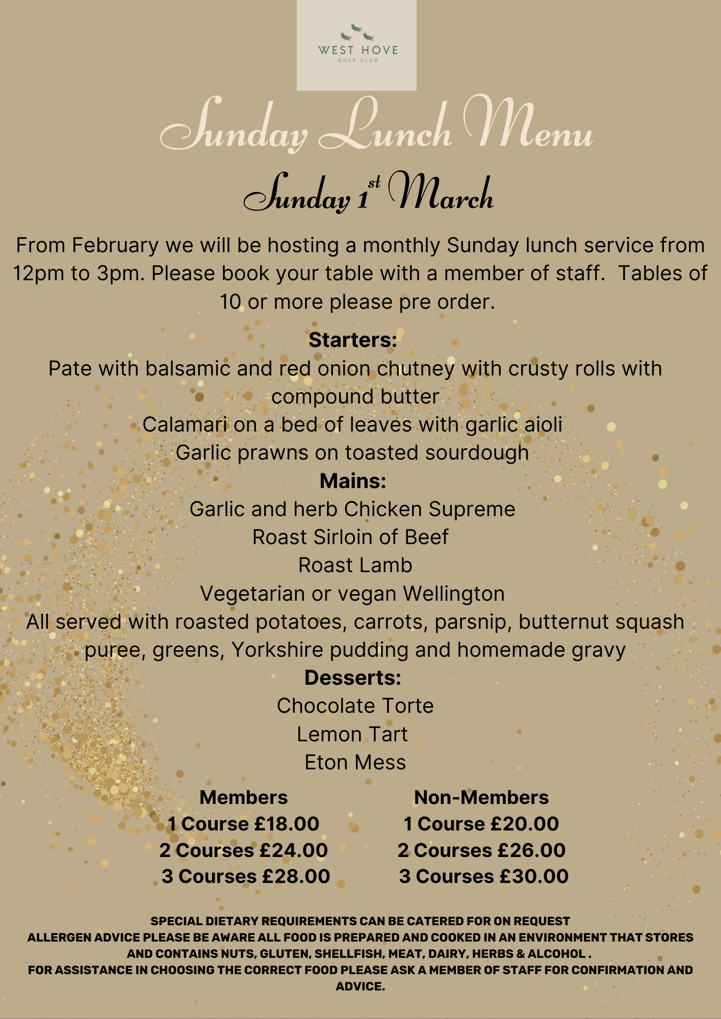 You will see on the menu we have a special members price for you and your guests.